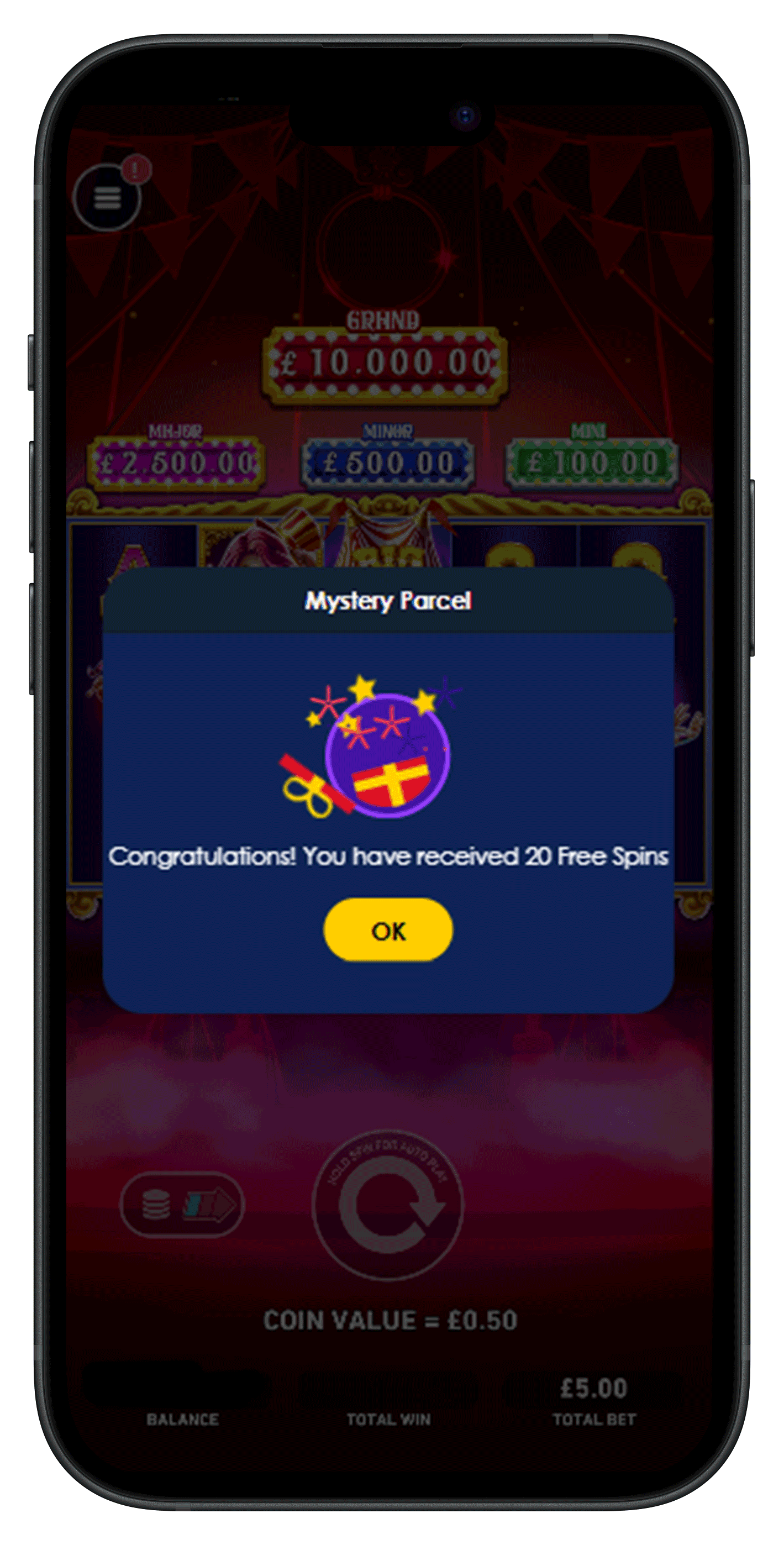Celebrate Carnival with the Carousel of Prizes Mystery Parcel! Parcels containing rewards like Free Spins and Cash Bonuses are passed around until they open at random.