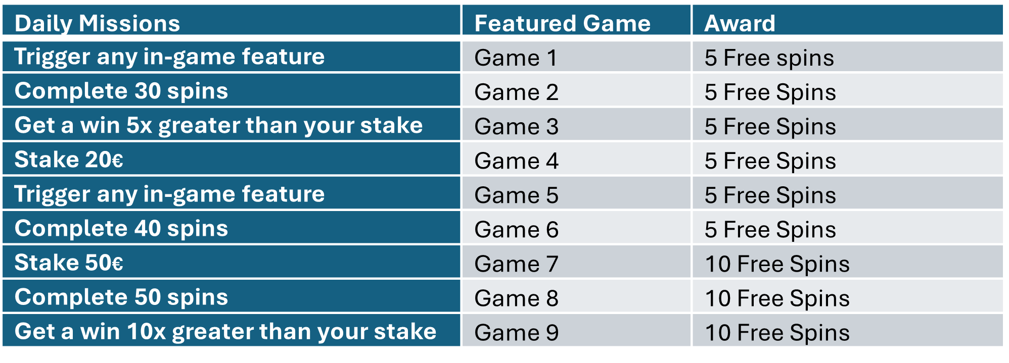 Players are guaranteed Free Spins for completing the daily challenges.