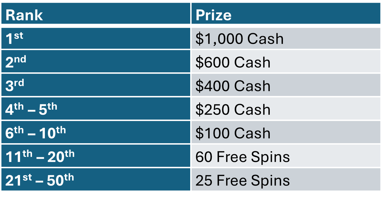LEADERBOARD PRIZE TABLE: