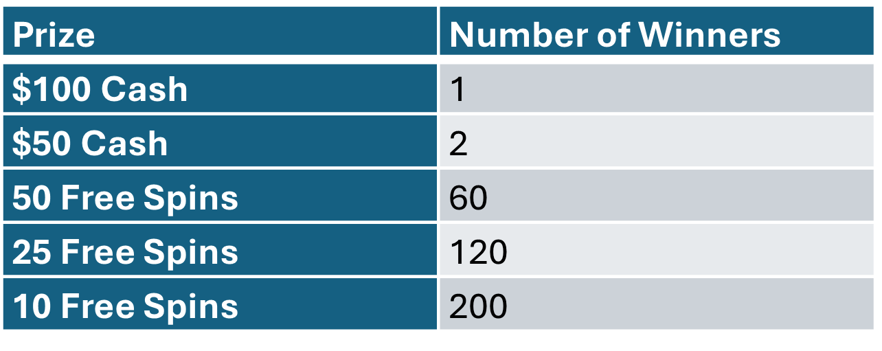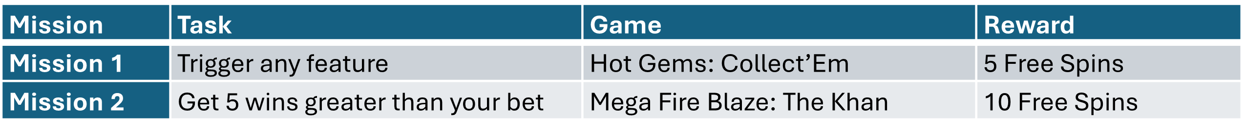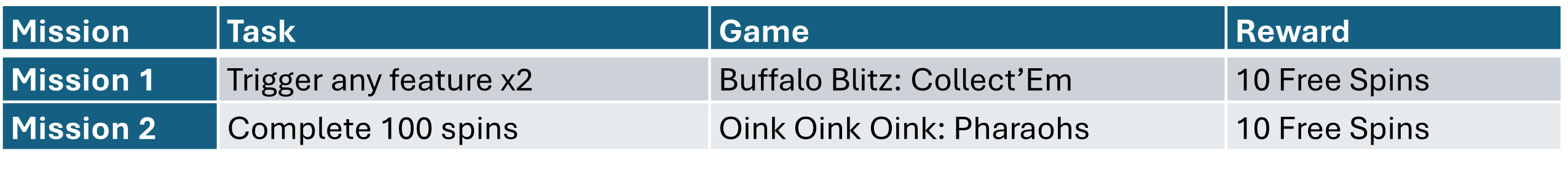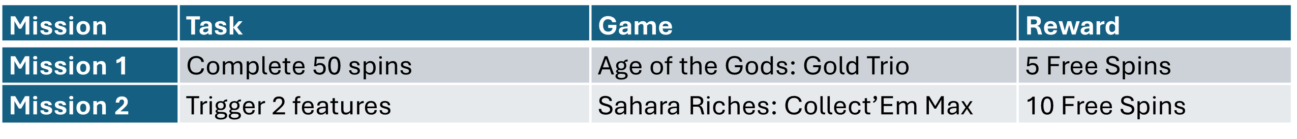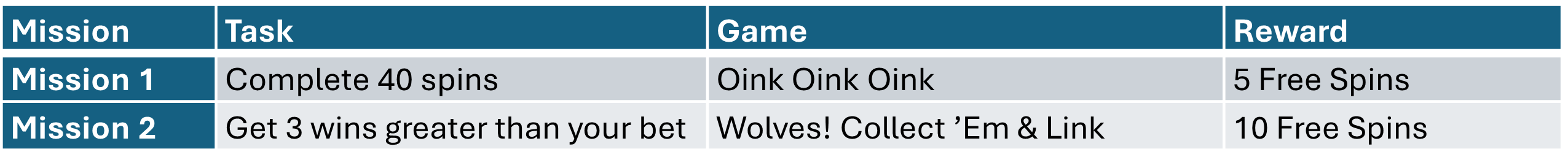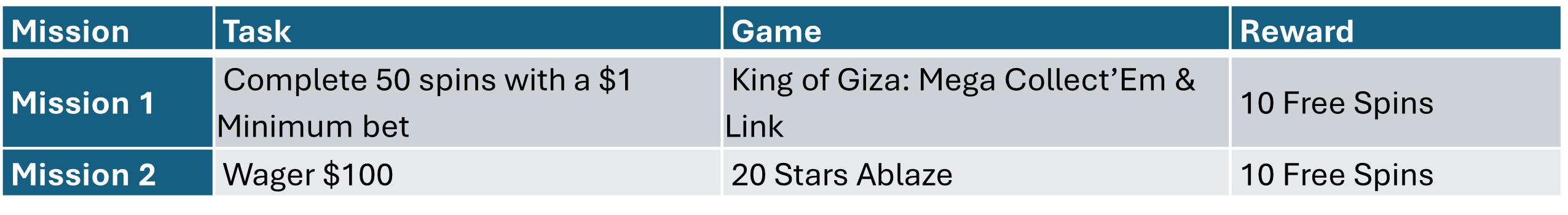 Daily activities designed to reward returning players while featuring a wide variety of themed games across the promotional period.